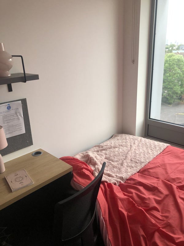It’s a 15 min bike away from KCL and LSE and has local markets and food places around it. It has a big Asda and Lidl on a 3 min walk plus bus stops and tube stations nearby too. The building has all new amenities as it was built just 2 years ago. The kitchen has a TV and is huge with all new appliances too.