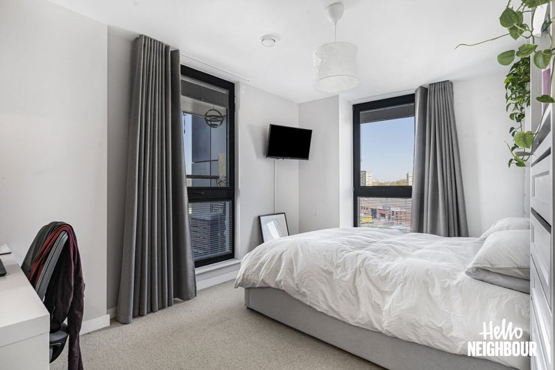 Large En Suite Double bedroom Left! A rare find in this modern new build with great amenities and fully furnished to a lovely standard. The building is manned 24hours by a conceirge whose great at recieving parcels! The building has a fully kitted gym and is a great place to meet fellow neighbours - most people in the building are very social young professionals and families. There are 2 roof top gardens with panoramic London views and a great NYE party by residents every year!