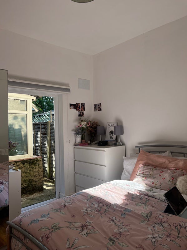 The house has 2 ensuite rooms upstairs and 1 bathroom shared between me and another housemate. We make sure to keep it very clean and tidy since it’s shared between two. The room is a double bedroom with all furniture in, with a cupboard, desk and chair and a chest of drawers.
