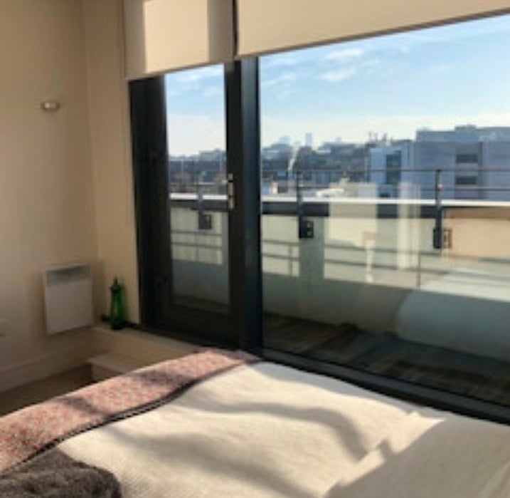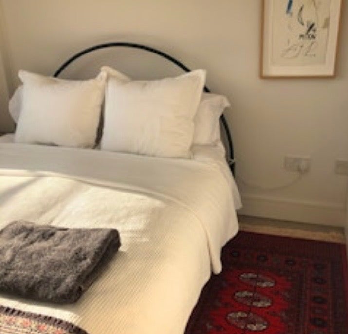 Light and bright room in very quiet location. King size bed. Flooded with early morning sunshine on a sunny day!