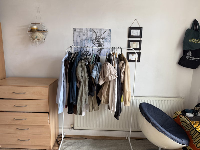The room comes fully furnished with a bed and mattress, bedside tables, a large wardrobe, a chest of drawers, and floating shelves. I’ll also be leaving my mirror and clothing rack for your use if you'd like!