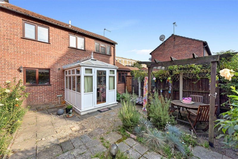 Spanning two floors, this comfortable family home comprises an entrance hallway with under stair storage leading on to a dual aspect reception room and separate kitchen with conservatory, as well as a dual aspect bedroom/additional reception room. The private, enclosed landscaped garden has a pergola seating area for al-fresco dining and relaxing, mature planting, outside storage sheds, as well as a gate to a private parking space. Upstairs provides two further double bedrooms (one boasting dual aspect views) and family bathroom. There is also a loft hatch with further storage space.