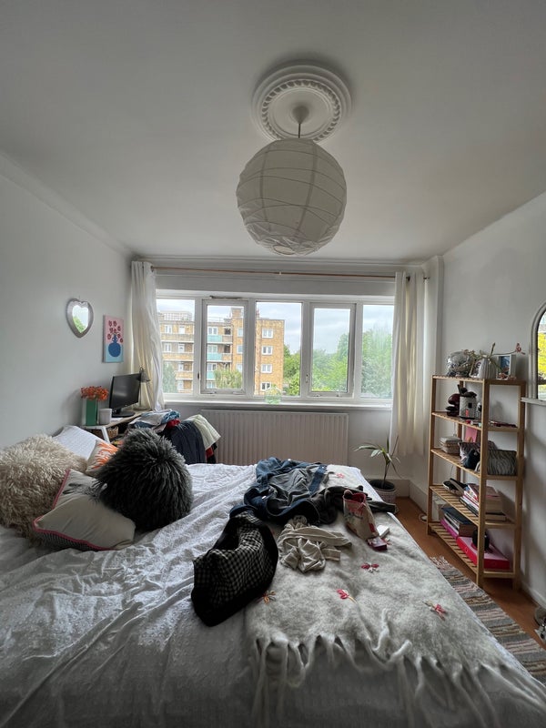 Double bedroom with big windows. Two floors, two bathrooms, kitchen with French doors, lounge with sofa and dinning table. Living with 3 girls 25/26.