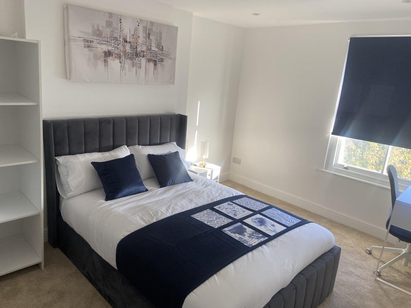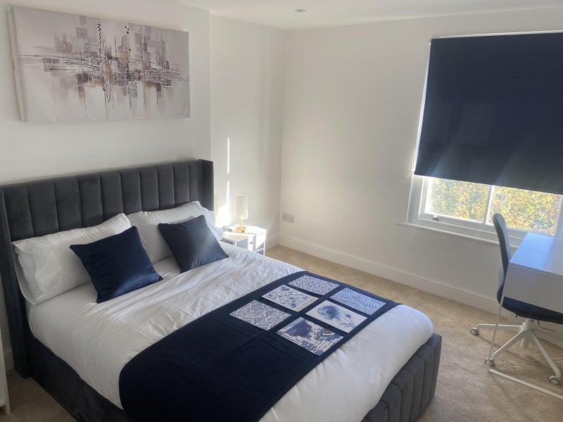 The room is spacious and furnished to a good standard, providing a comfortable private retreat within the flat.