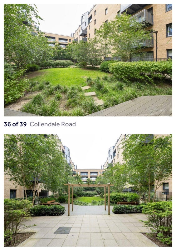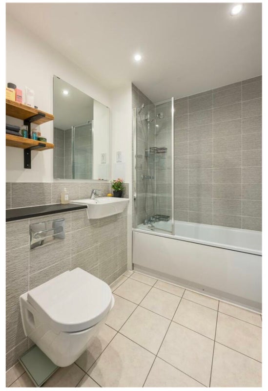 Shared living room, kitchen, and top floor roof terrace wraparound garden. Lots of light. The apartment block also has a central communal garden. Washing machine, dishwasher and espresso machine included.