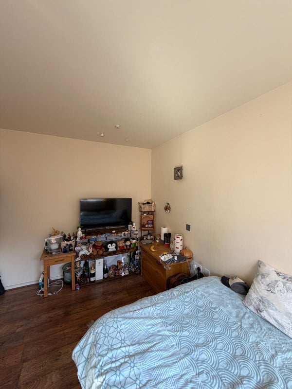 A bright and spacious double room featuring a Juliet balcony, plenty of natural light, and built-in storage.