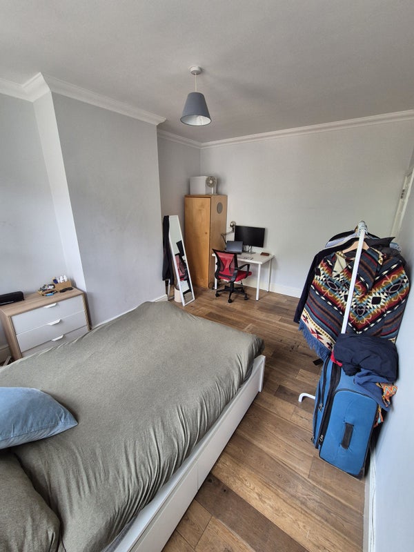 One large bedroom with a double bed, fully furnished, in a 2-bedroom flat, only 2 mins from Russell Square station. Flat is on the first floor, a few stairs up from the street.