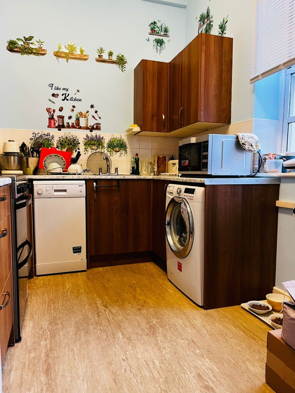 The flat is on the ground floor, one level, in a cul-de-sac street, so no through traffic, makes this a very quiet place to live in.