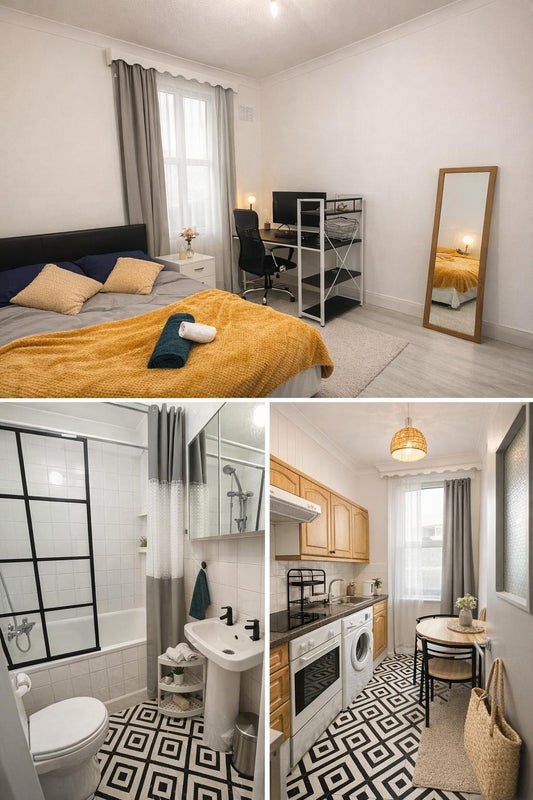 Right Room is delighted to present this prime en-suite room located on the renowned Grays Inn Road, directly opposite King's Cross St Pancras station.