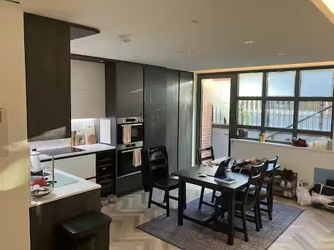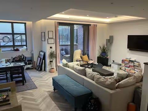 The Flat: Large, well-maintained apartment shared with the owner (male) and another flatmate (female). Open-plan living area, fully equipped kitchen, modern shared bathroom (with one other person). The flat benefits from plenty of space and natural light throughout. Please note: We have a friendly dog, so the room is only suitable for those comfortable living with pets. Access to private patio area.