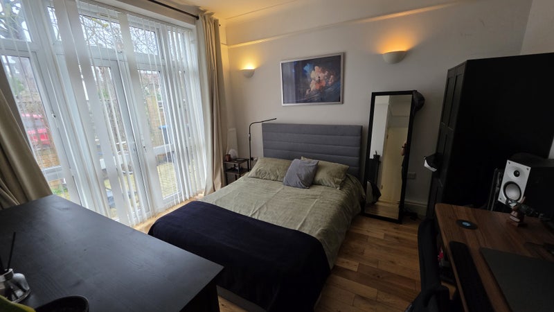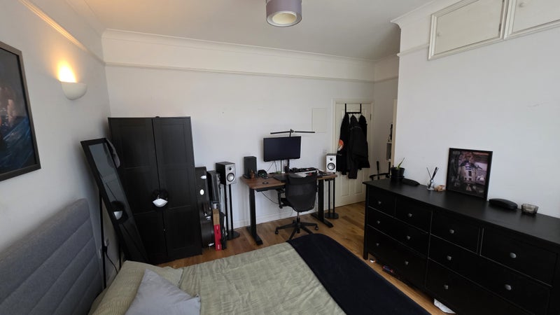 The room itself is a large double with high ceilings and large windows, so it feels bright and spacious. There’s plenty of room for a king-size bed, desk, storage and more (as evidenced in the photos). It’s currently unfurnished, but the landlord can provide furnishings if required. There is also potential to purchase the furniture in the adverts; however, these are being listed separately, so if interested please reach out ASAP.