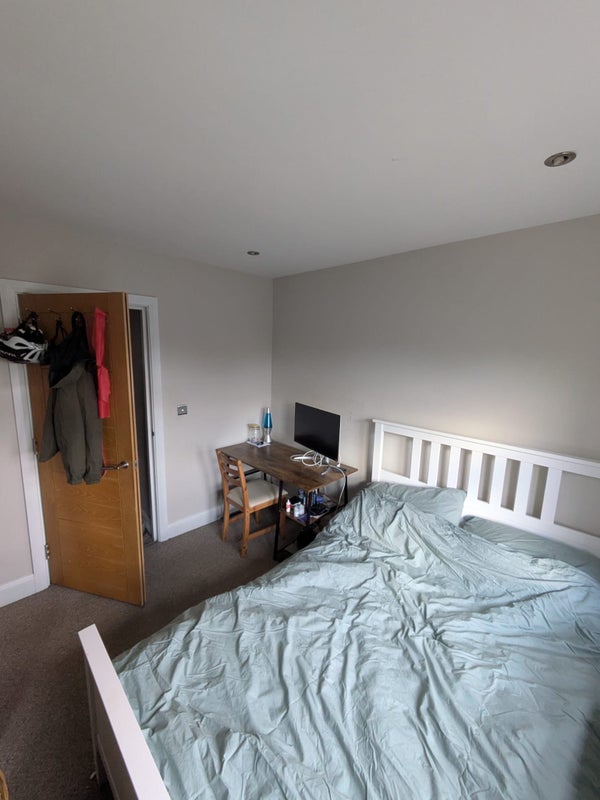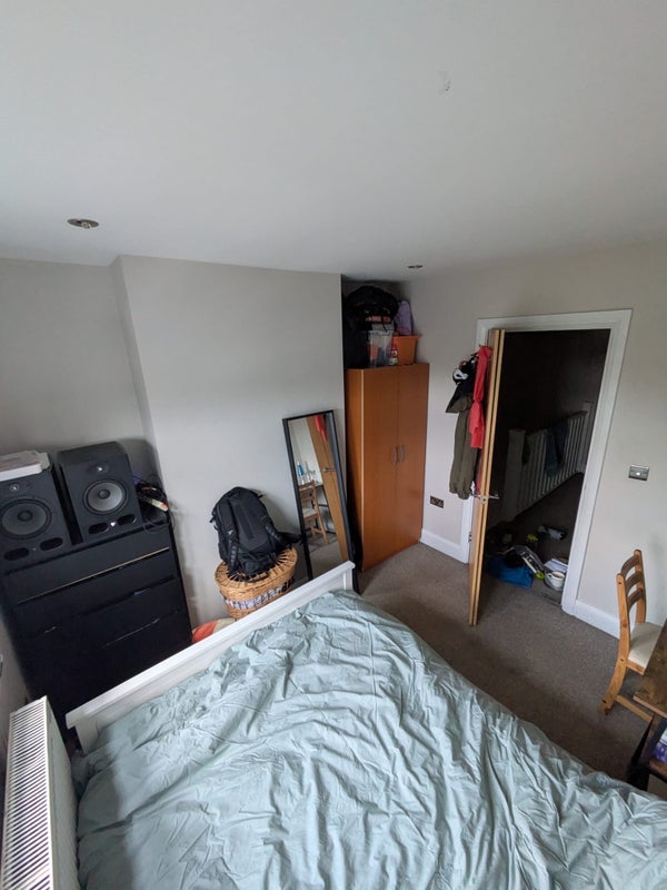 Reasonably sized and bright. The bed and wardrobe are staying but the desk and drawers are going.
