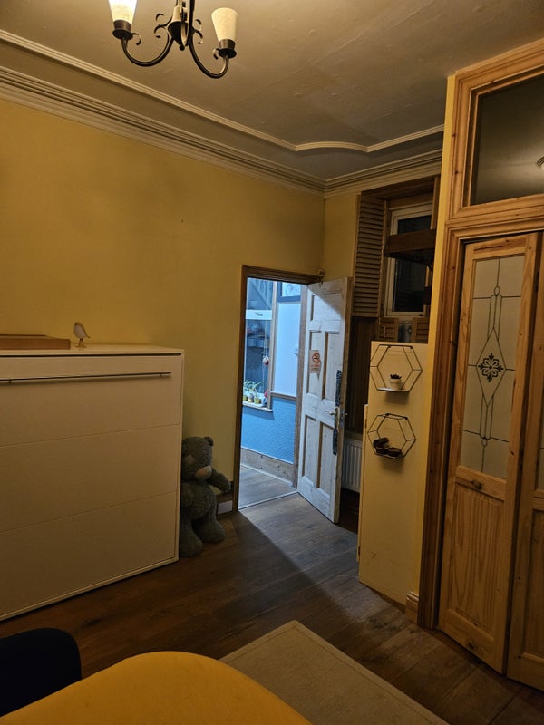 This is a livingroom - bedroom. The double bed is a wall bed. There is a normal single bed as a sofa.