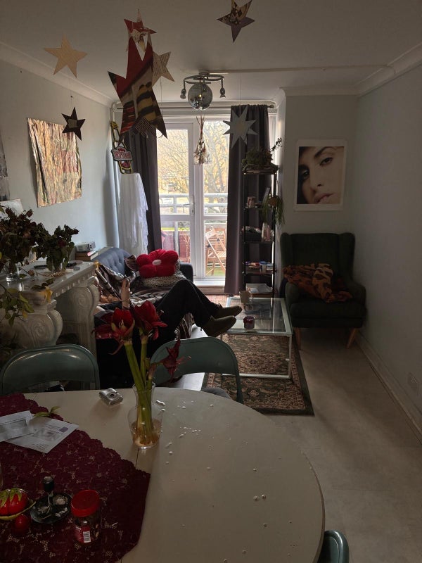 Next to Hackney Wick and Victoria park so lots of pubs and cafe’s, also a 5 minute walk from Roman road market so close to lots of shops and supermarkets.