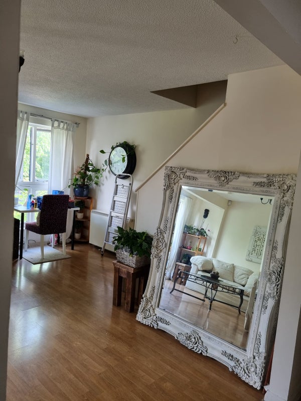Huge bright clean living areas, on the middle floor. Lots of windows & storage. 30 second walk to Victoria Park.