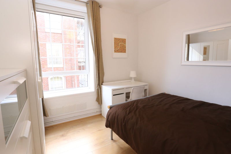 A bright and airy double room featuring an extra-large sash window that floods the space with natural light. Includes: