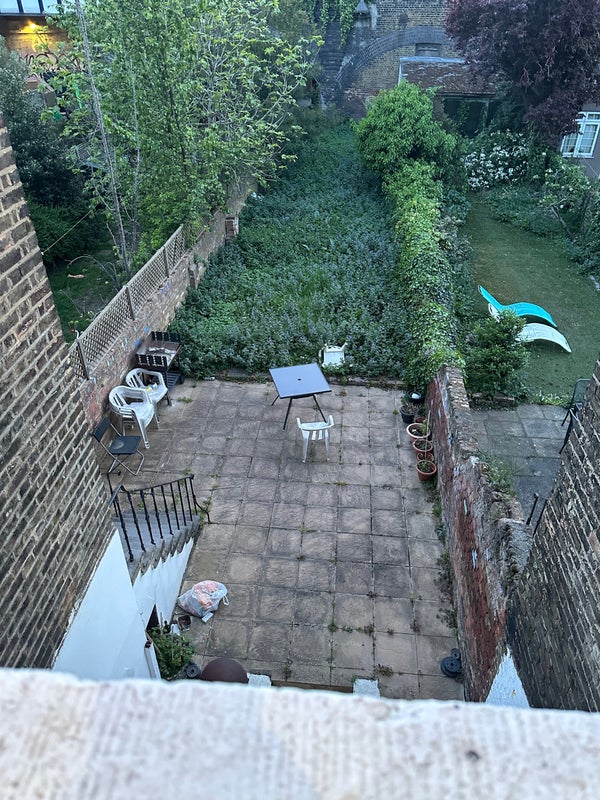 There's a huge patio and garden (rare in London), a living room, large kitchen and three toilets (2 bath showers and 1 shower).