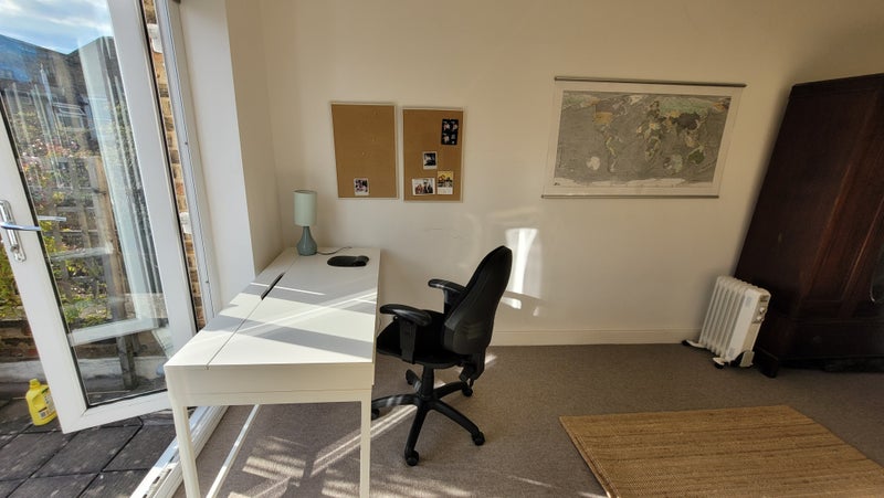 The room would suit a professional going into an office most days of the week although the room has a big desk and office chair.