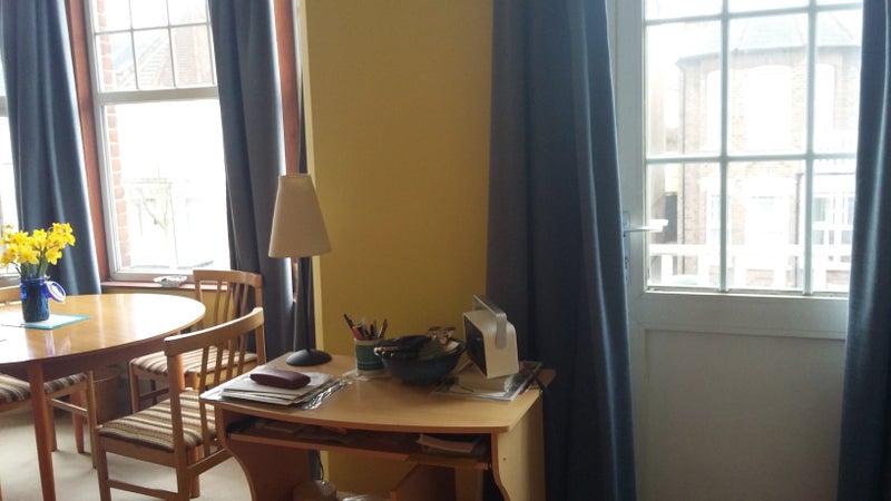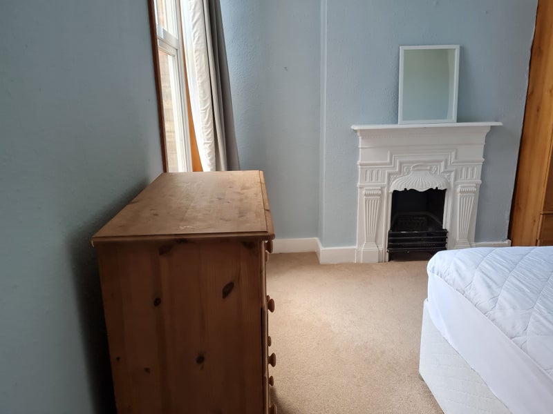 The flat is homely and comfortable with gas central heating. The room which is available has a double bed, wardrobe and chest of drawers. Kitchen, bathroom and spacious living room are shared. There is one other occupant in flat. There is access to a south facing balcony
