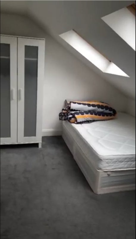 The room is furnished with a bed, mattress, and cupboard. The flat also has a washing machine, dishwasher, double oven, fast broadband, and central heating.