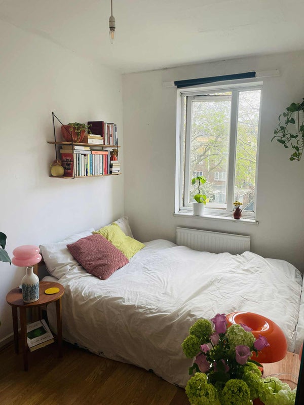 The house is a 4 bedroom, 3 storey townhouse with a garden (those with green thumbs encouraged!) and small living room located right off brick lane. The room available is a bright, small double room that comes furnished with a double bed and a wardrobe that's in the hallway so you have more space in the room.