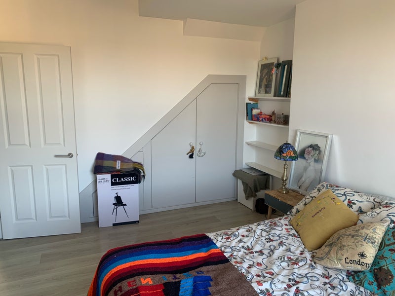 The flat is on the top floor of a four floor Victorian property split into four flats. Our flat is two floors and the room available is situated on the first floor. The room has beautifully high ceilings and view over London. It is a double fully furnished room with very large built in wardrobe. The bathroom would be shared with just myself and is directly next to the room. The other room in the flat has an Ensuite so there would only be two of us using the bathroom.