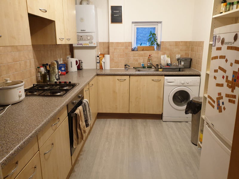 The flat has a bright, cozy living room with a small dining table, a comfortable sofa, and a good size kitchen with plenty of cupboard space. The bathroom is shared amongst the three of us. We have a garden which is great in the summer and there is a private (and free!) car park which we have access to. There is also a secure bike shed.