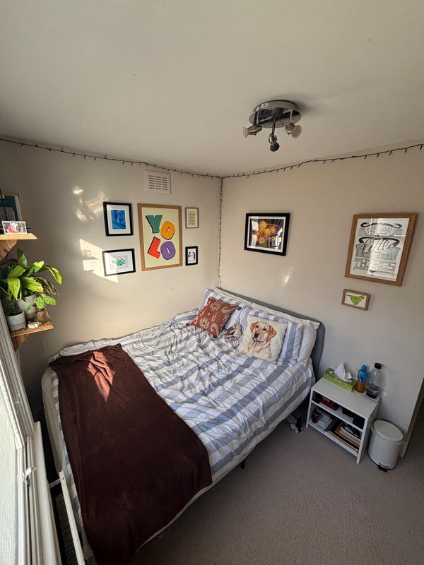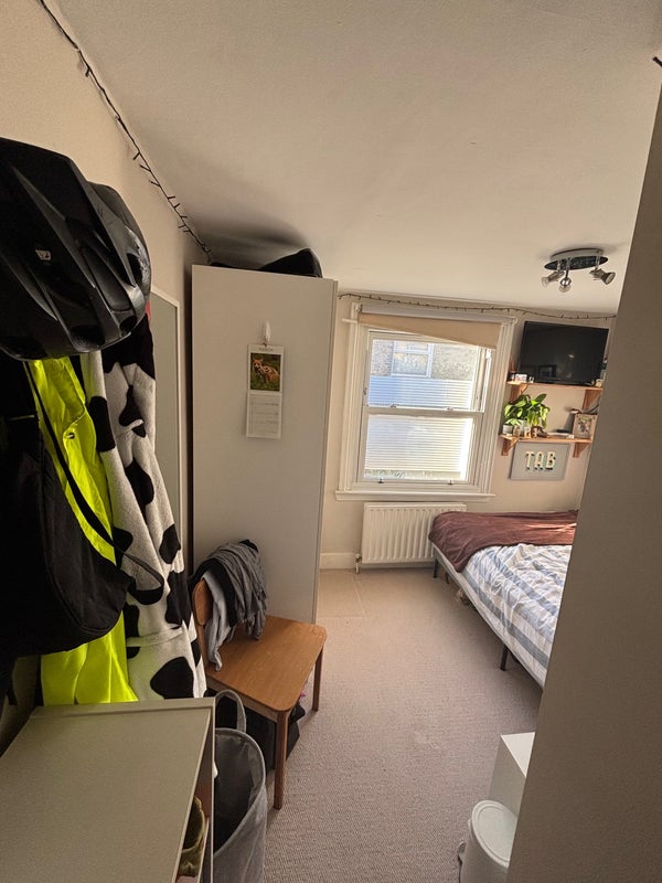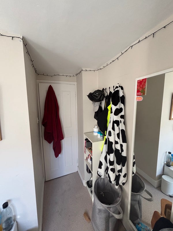 It is a first floor, split level flat and fully furnished. There is good storage in the room with a wardrobe, bed side table, shelving above the bed, shelving unit, and space for under bed storage. There is also plenty of shared storage around the flat. We've recently had the whole flat repainted with new carpets, a new boiler and a new fridge freezer.