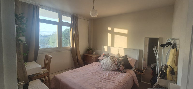 The bedroom is roughly 3m x 3m, with views looking north (right to the London Eye). I have my own bathroom so the guest bathroom (which is newly refurbished with a waterfall shower) is almost private.
