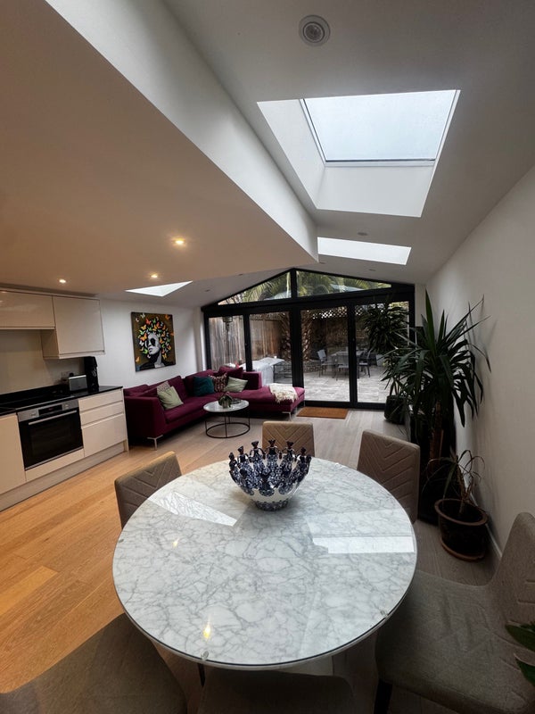 One double room with own bathroom (right next to room with exclusive use but not en-suite) in lovely house with garden in Brixton. Shared use of two living spaces including large kitchen. Sharing with two gay men. Bills are £200 a month. Includes cleaner once a week and high speed internet.