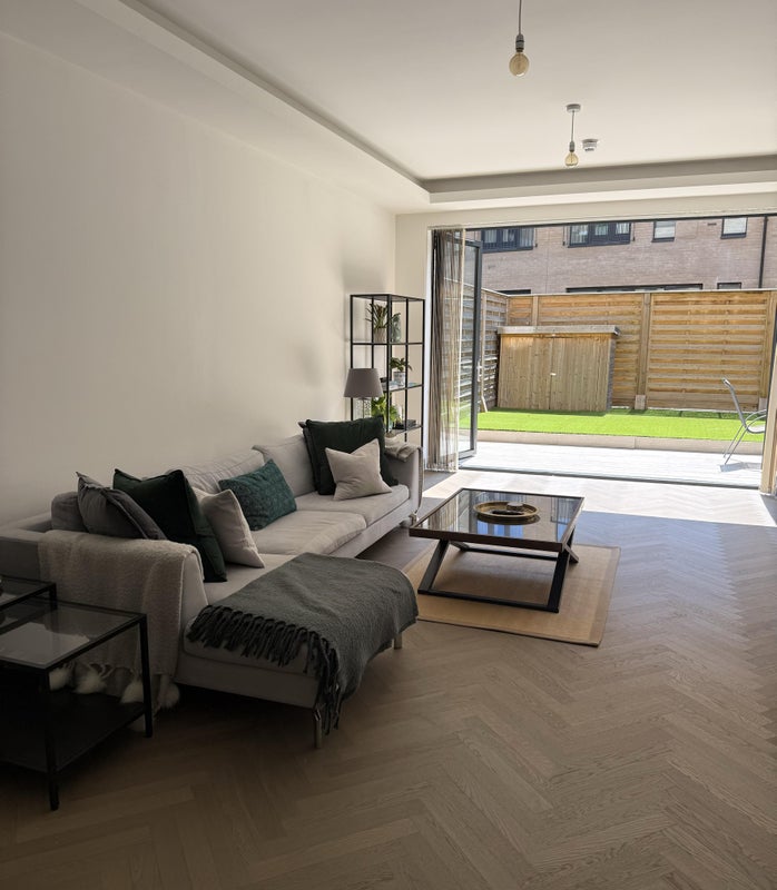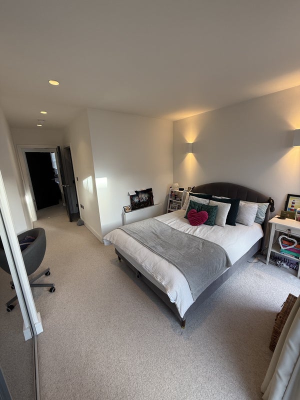 All rooms are unfurnished, each with either built-in wardrobes or generous storage. Rent is £1,250 plus bills of around £120 per month.