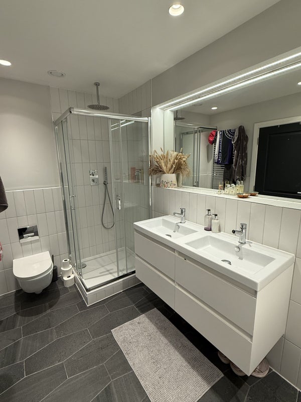 Three lovely en-suite rooms available from 14 January in a modern four bed home in Clapham. The house is contemporary and spacious, set over four levels with a large open-plan kitchen and living area, plus a sunny south-facing garden that’s perfect for summer relaxing or hosting.