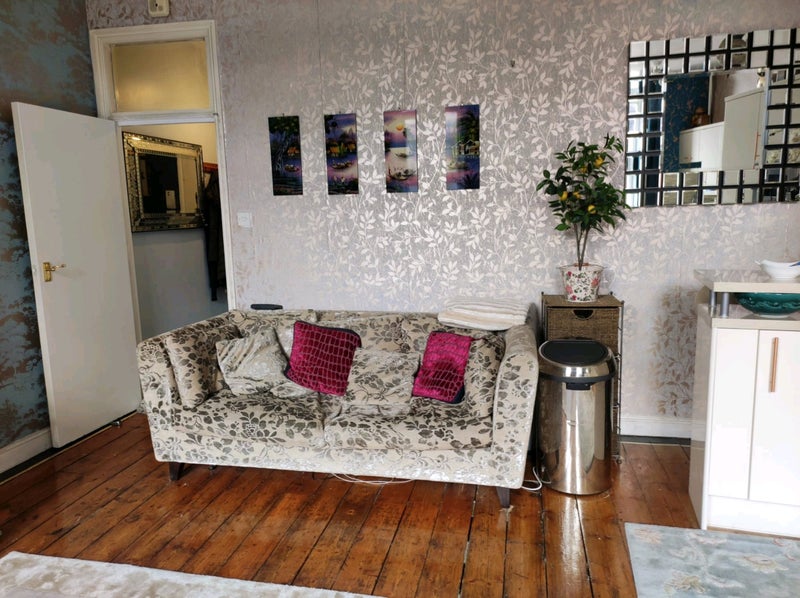 Open plan living room / kitchen with comfy sofas. All mod cons, eg wooden floors, washing machine, WiFi, double glazing, weekly cleaner.