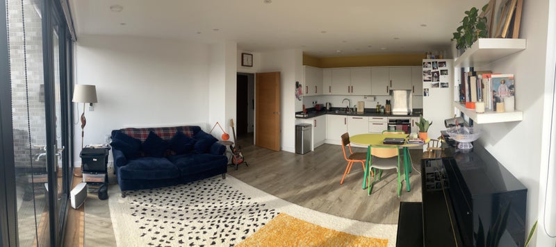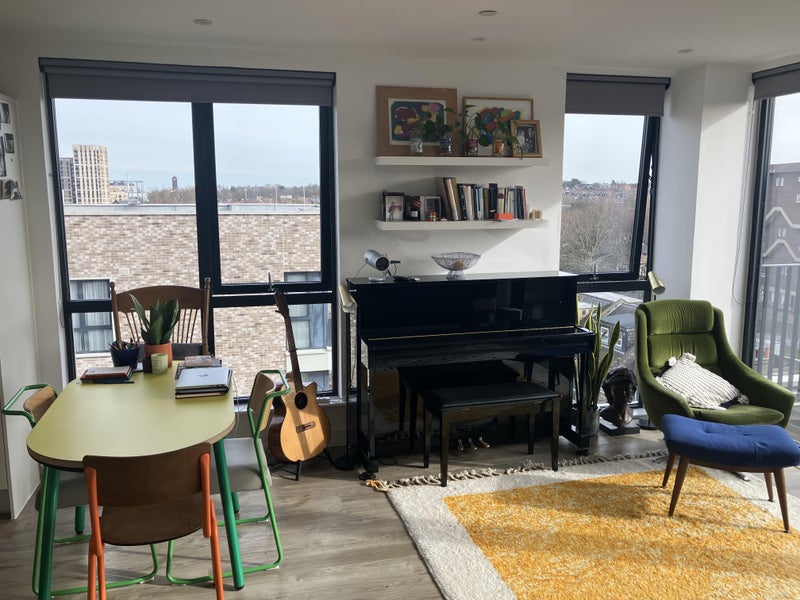 We'll share the living room and kitchen and everything in it (I'm looking after my friend's piano at the moment so if you happen to be a concert pianist and want to practice then that is very much encouraged!) And when the weather's nice you can open up the double doors and sit out on the balcony.