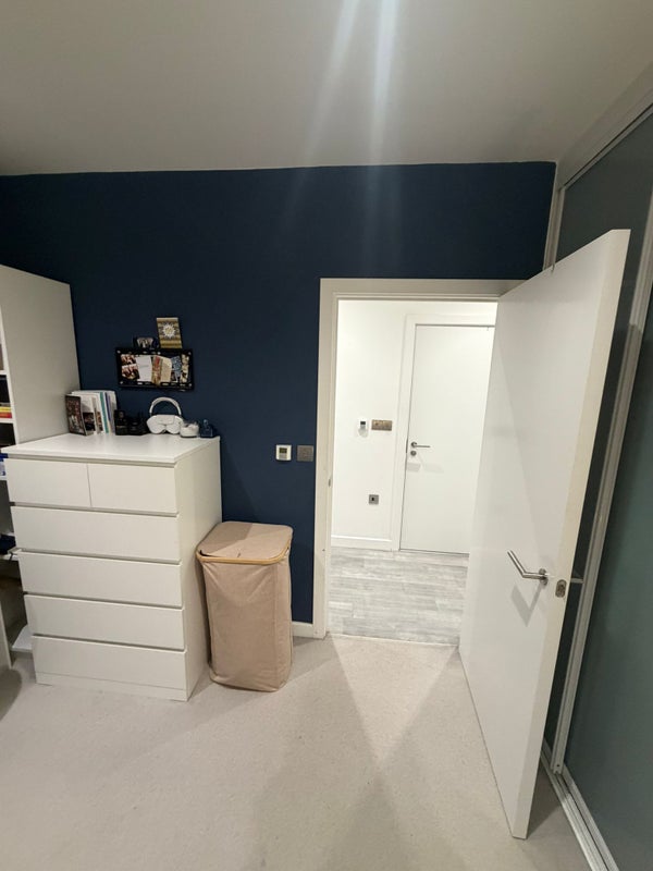 The flat is modern, warm and well looked after, with underfloor heating throughout (a real bonus in winter). The bedroom is generously sized and features built-in wardrobes with plenty of storage and a desk.
