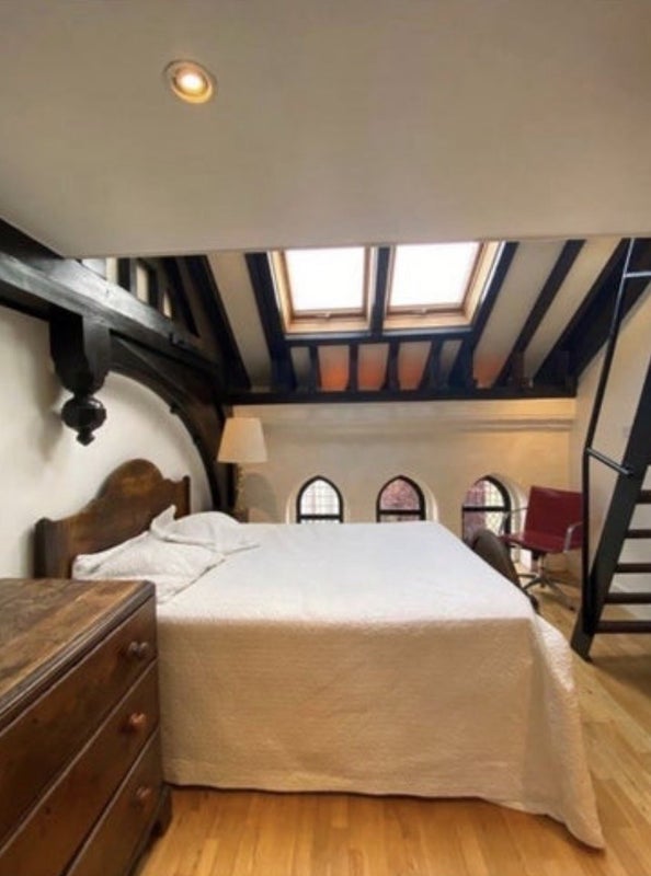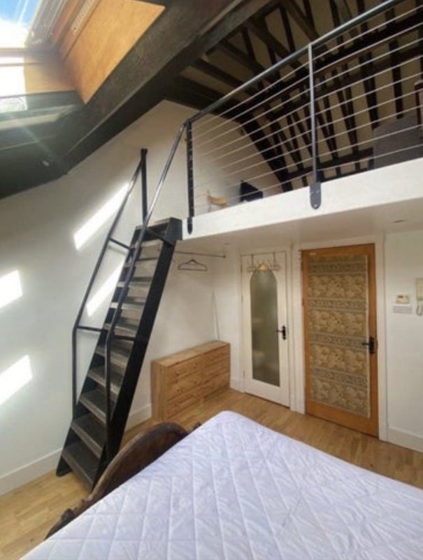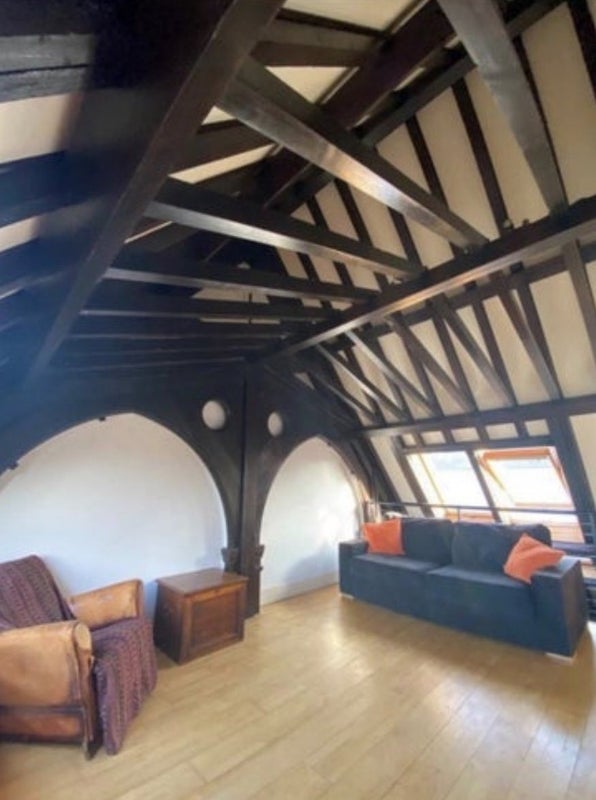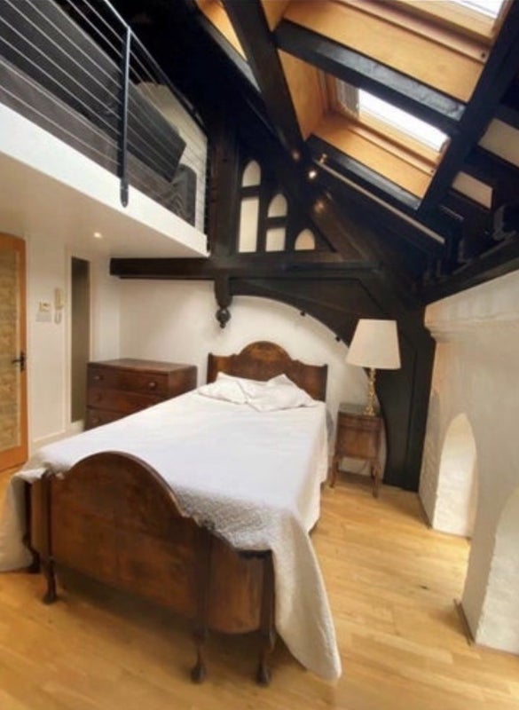 Spacious double room in a converted church with period features and exposed beams. Comes with a spacious private mezzanine floor above the room, and a private en-suite.