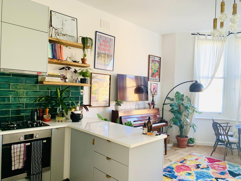 This bright, airy, 1st floor flat has an open-plan kitchen/lounge and bathroom and is fully furnished, with plenty of storage - and filled with plants and pictures.