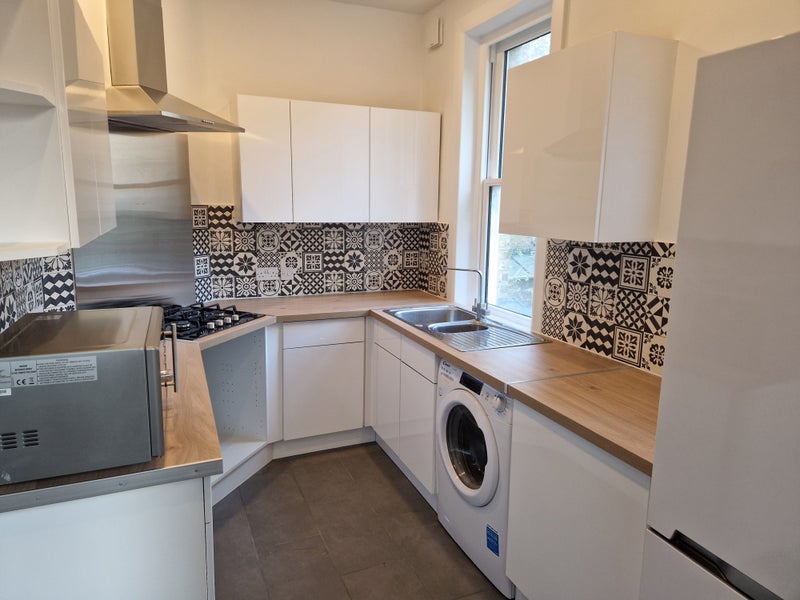 has recently been refurbished so it is in excellent order. It is located on the first floor, which is great for security, without having to walk up endless flights of stairs. There is a large open plan kitchen / lounge equipped with a washing machine, Microwave, 50 inch smart Tv, 5 seater lounge suit and a storage closet in the entrance hallway. There is also an area where you can park your bicycle inside the entrance of the mansion block and a large communal space outside to the rear. Unlimited Broadband can be included for an extra £45 pcm. Oven installed since pictures taken. May accept 4 tenants for an additional £ 250 pcm.