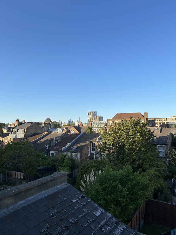 The flat is very nicely decorated throughout and feels incredibly homely. The room is a well-sized double with lots of storage and fun views across gardens towards the City skyline. Furnished fully other than a desk/desk chair.