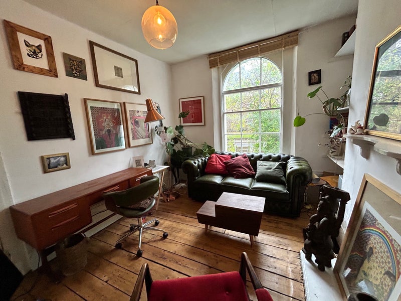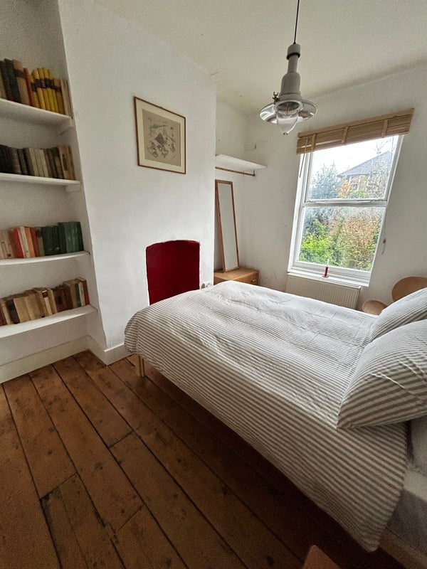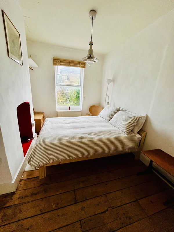 A large double bedroom in a Georgian house in Brixton, facing the garden, with its own living space, a calm and private retreat within a warm, bohemian home. £900 per month, all bills included. Available from 1st July.
