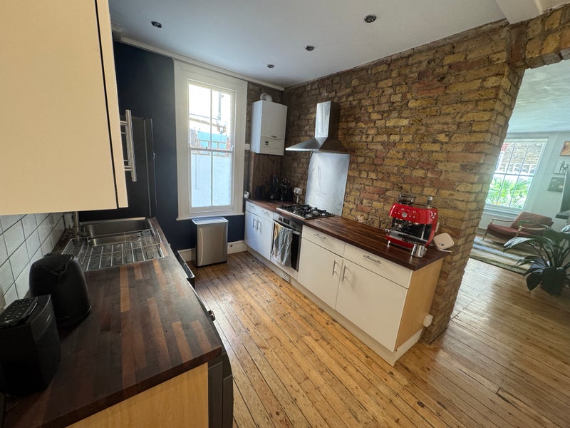The bedroom has a double bed and a large built in wardrobe, plenty of under-bed storage and also a ottoman storage unit. The flat has a very large kitchen and living area, and a good-sized private garden that I renovated less than a year ago.
