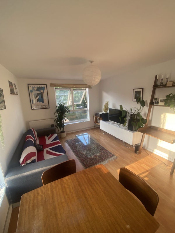 Bright and cosy one-bedroom flat in Aldington Court with a direct view over London Fields — one of the nicest green spaces in East London. It’s a really popular area, especially with young people, thanks to the park, the vibe, and all the local spots. The living room is full of plants, there’s a comfy double bedroom, and a kitchen with a washing machine.