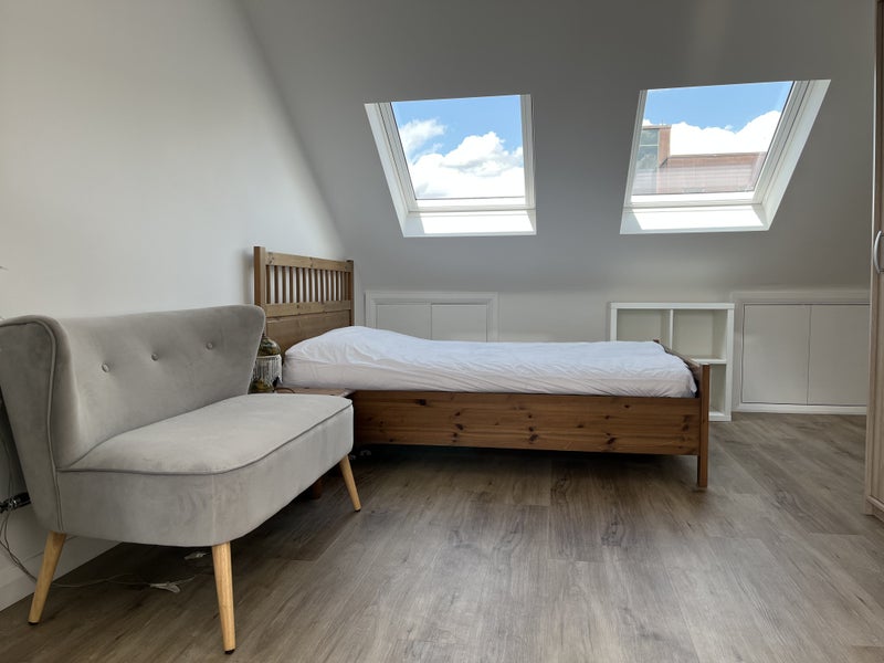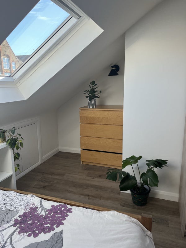 A converted spacious loft space in the centre of Brockley. With it's own kitchenette and dining area, separate bathroom and lots of storage. The access is shared through the main house but very private in the loft. The house is a 3 minute walk to Brockley station and 12 minutes to Nunhead with fast links to London Bridge and Victoria station. There is street parking available. A 30 second walk to Sainsbury's, restaurants, cafe and a yoga studio. Must be comfortable with cats as 2 live here. Bills are included.