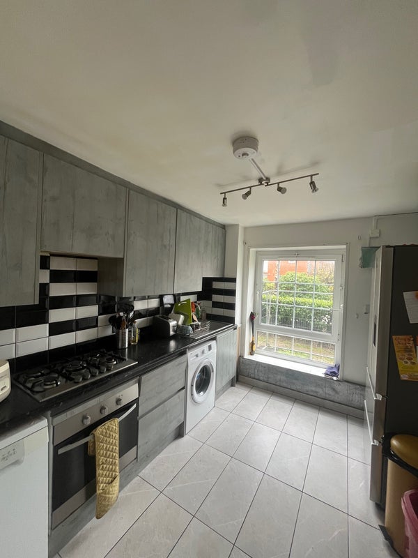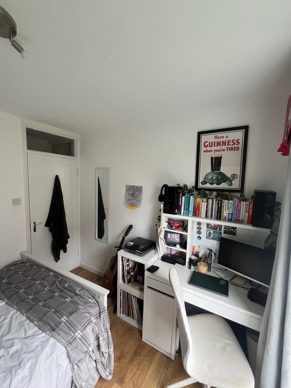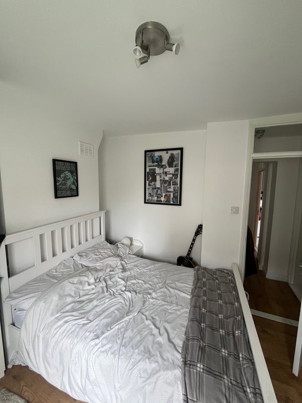 A bright double bedroom is available in our spacious four-bed, ground-floor flat in SE4. The flat has a large shared living room and kitchen, two showers, two toilets, and a bath, so there’s plenty of space and no morning queues.