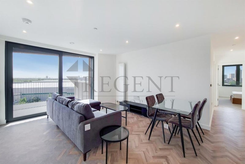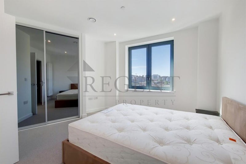 En suite room in a new build in Bromley by Bow (5-10min walk from Bromley by Bow station and 10min walk from DLR station). Two bed rooms, two bathrooms. The available room is en-suite with a view of Canary Wharf skyline. Large balcony overlooking the river Lea.