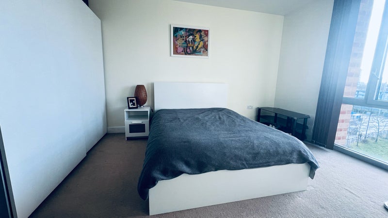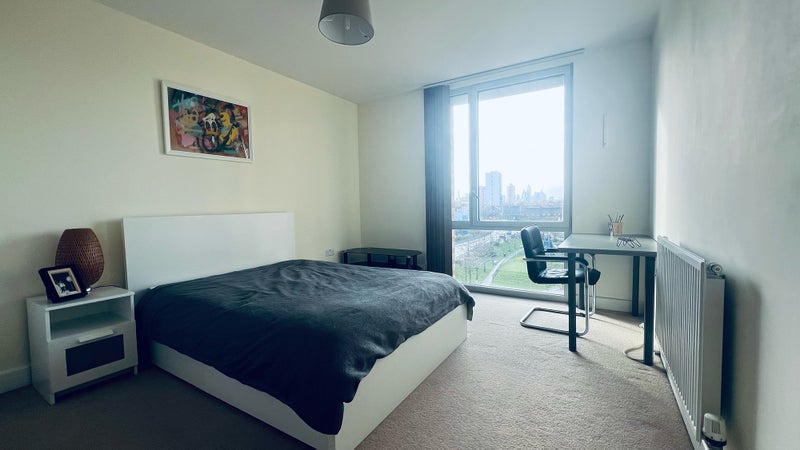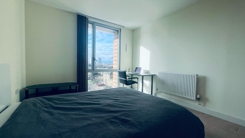 A bright, large double room available in a modern fourth-floor flat (of five) in Bromley-by-Bow (E3 3DW).