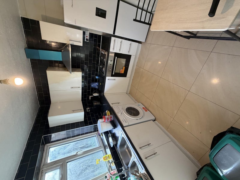 • Appliances include microwave, kettle, toaster, washing machine, and fridge