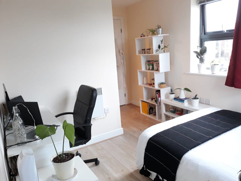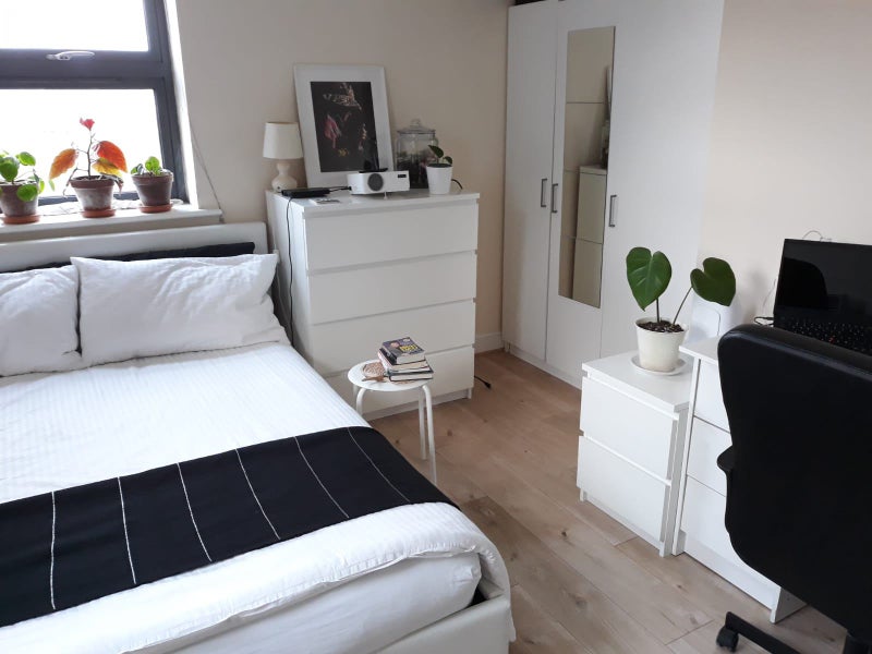 This a modern flat located on the top floor with lift, consists of 3 bedrooms and two bathrooms. This is the large double room with en-suite AVAILABLE. The flat has 1GB fibre internet connection.