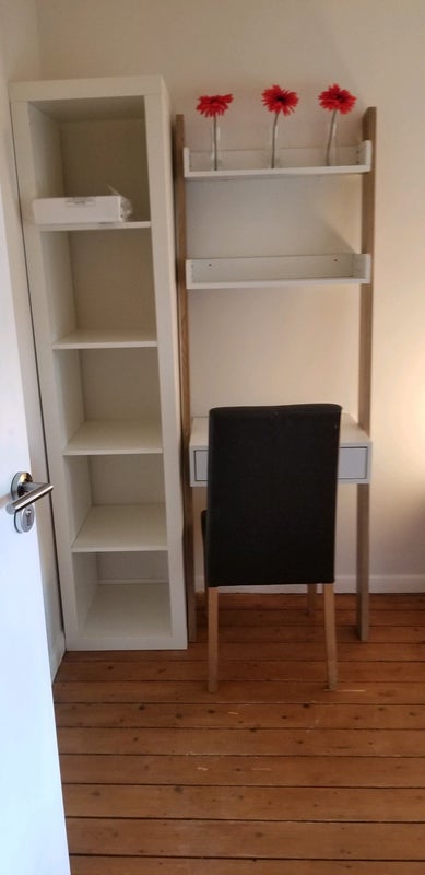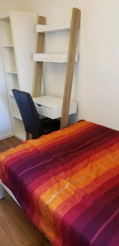 The room is on the 1st floor, comfy and warm, with a double bed, lots of built in storage space, large chest of drawers (optional) and desk.