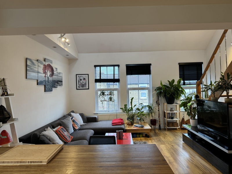 Lovely small double room available from 1st April in a cosy, furnished 2-bed top-floor flat. The room has a double bed, wardrobe, chest of drawers, and good storage.